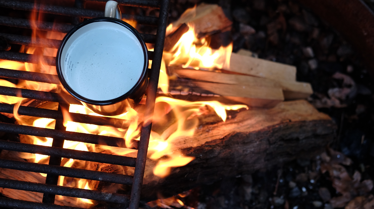 Discussion of the ritual of collecting ashes while camping.